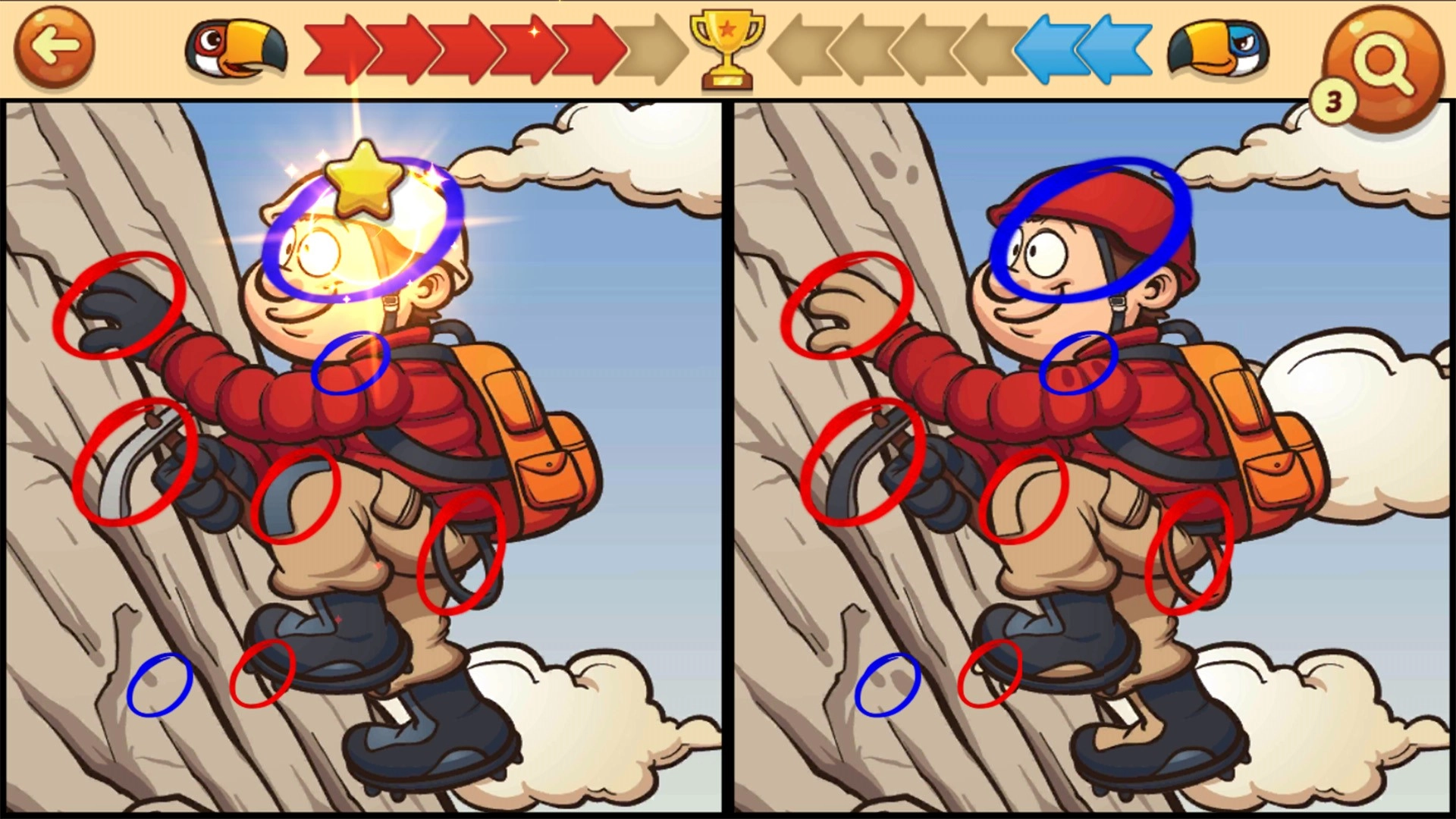 2、寻找各种不同点,完成不同难度的寻找挑战,解锁特殊成就。