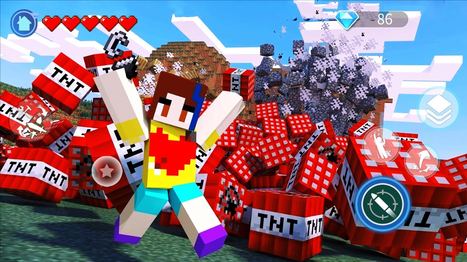 3. 极致破坏:在TNT自由世界里,TNT炸弹的运用堪称一大特色。玩家能够自行设计并布置各类TNT炸弹,借助精准的计算与巧妙的布局来触发连锁反应,不管是小范围的精准爆破,还是大规模的毁灭性攻击,都能在这个世界中得以实现。