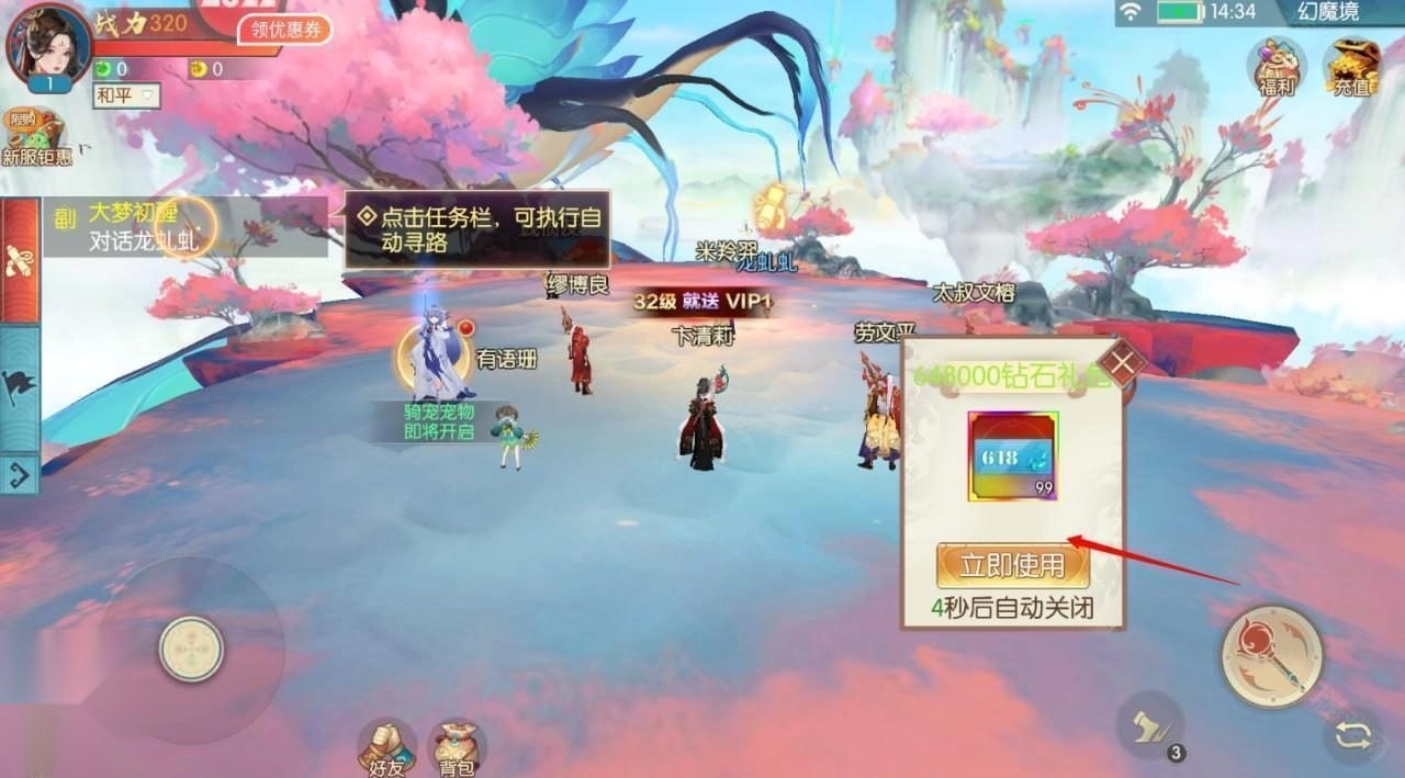 2、创建好角色昵称进入游戏中可以点击游戏赠送的大礼包。