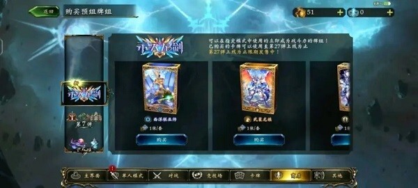 设置完毕后就可以去抽卡了,点击商店-购买卡牌-购买卡包,把所有卡包卷抽完。