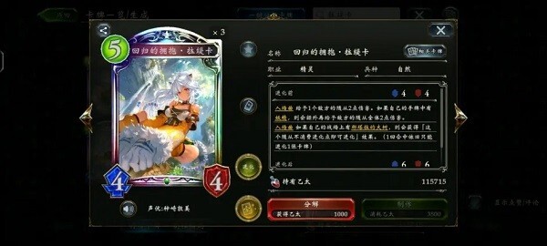 里面可以用每日任务以及天梯对战获得的暂用宝石兑换能永久使用的虹卡。每种虹卡只能兑换一张,而且不能分解。合成卡组时记得先来兑换,可以节约以太
