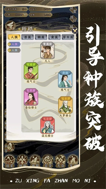 以祖星的发展历程为依托,融入修仙相关设定,玩家将引导不同种族的诞生,并为它们创造突破境界的机缘。