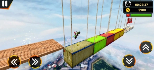在《极限3D摩托车骑行中文版》里,玩家得精准操控机车的加速、刹车与倾斜,以此应对五花八门的空中挑战。