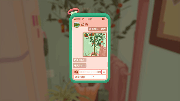 3、进入游戏后拍一张照片,然后发送给“奶奶”