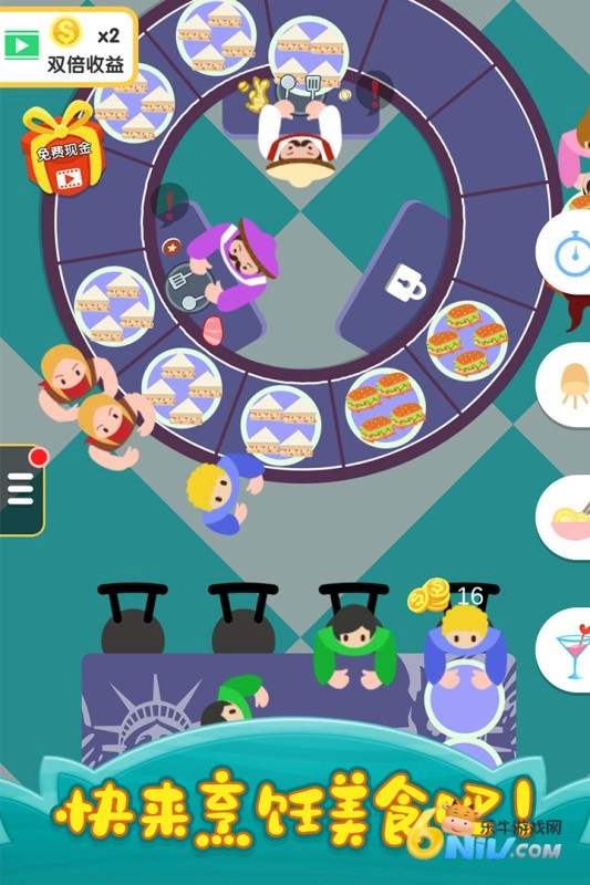 2、采用精美的卡通画风,生动展现美食的诱惑,让玩家欲罢不能。