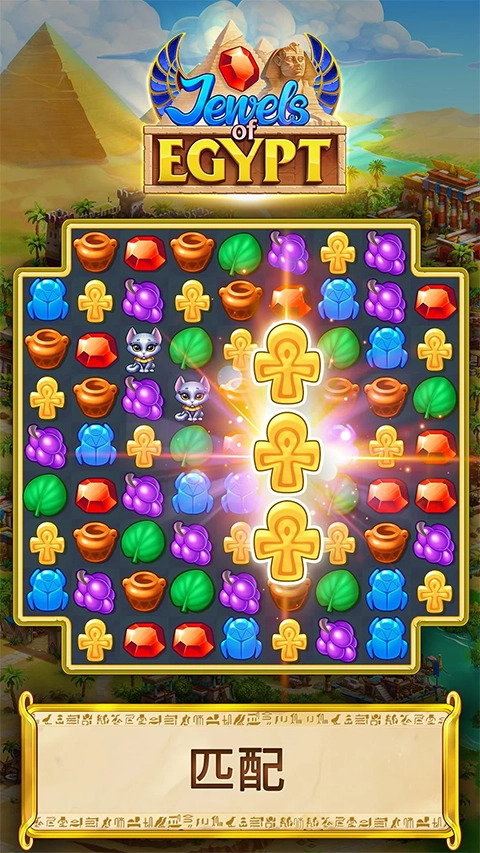 埃及的珠宝(Jewels of Egypt)是一款休闲益智游戏。在游戏里,玩家将重返荒芜的古埃及,通过上百个三消关卡,对各类宝石进行匹配交换,持续收集资源,使这片曾遭破坏的文明重焕生机。你还能亲眼目睹宏伟的金字塔、神庙、宫殿与方尖碑,在自己的努力下恢复往日的辉煌。