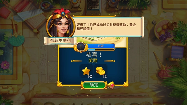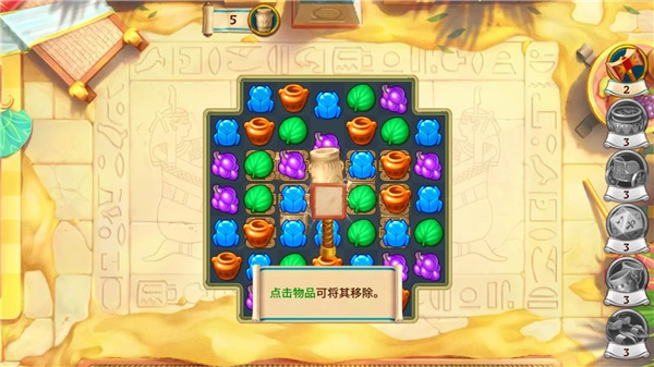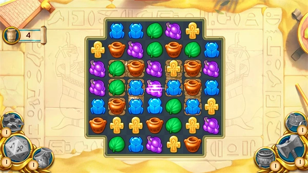 通过消除关卡解锁剧情章节,逐步揭露家族秘密与古埃及神话。