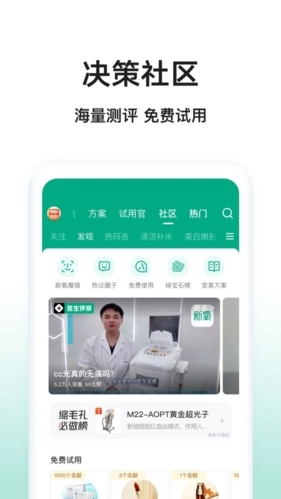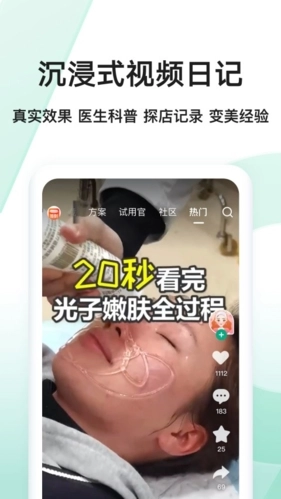 2、权威医生:目前有超过1万名经过资质认证的医生在线,超过6千家正规医美机构入驻,为用户提供专业客观的医美信息与诊断建议