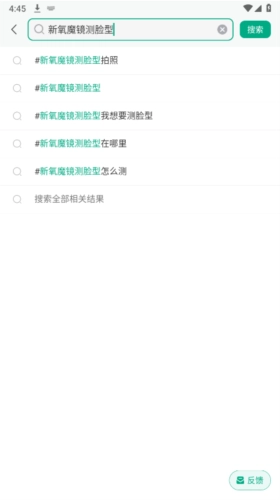 2、输入新氧魔镜测脸型进行搜索。