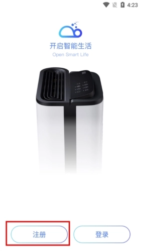 首先,用户可以选择在本站下载最新版的德业智能,点击打开该应用后,再选择界面左下角的“注册”按钮。