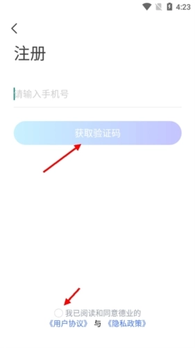 然后输入用户的常用手机号,勾选下方同意阅读事项后接收验证码。
