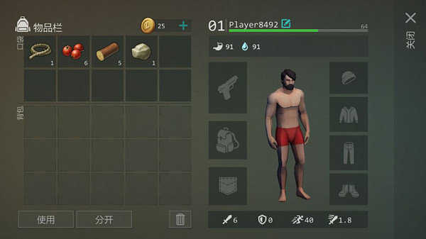 无限技能点,拆分材料物品时,越分越多。吃东西之后,即可饱腹。
