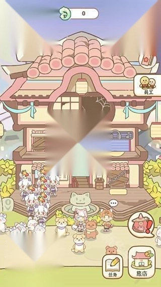 2、客人点餐后厨房自动做菜、上菜,点击地上的金币就可以获得费用,前期可以点击右下角的妖怪图标,按照任务列表解锁新摆设。