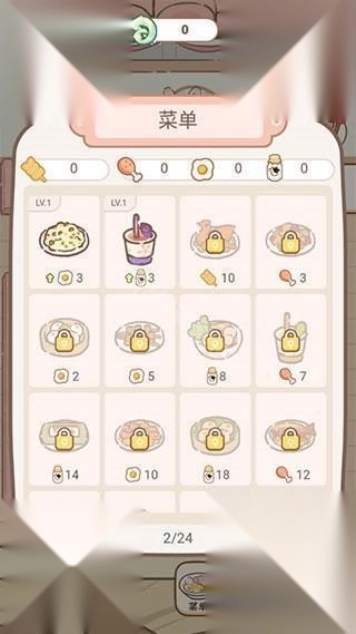 3、点击底部的菜单,花费一定会的数量的煎蛋、鸡腿、调料以及小麦来解锁升级新菜品,就能够满足更多客人的需求。