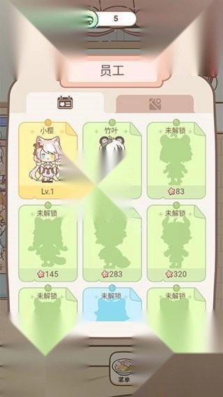 6、达到一定的等级还可以解锁右上角的“员工”功能了,点击员工进行雇佣,还可以通过探索获得培训道具对她们进行培训,提升服务能力。