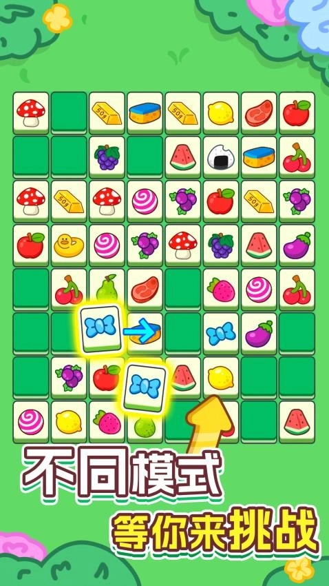 创新挪对对邀你来挑战!游戏内含两种主题可自由切换,既有水果等日常元素,也有麻将主题,能满足不同人群需求,男女老少都适合玩。操作十分简单:玩家点击两个相同且相邻的元素就能消除;或者把两个相同元素移到同一直线上,只要它们之间没有其他元素阻挡,同样可以消除。消除所有元素即可通关。