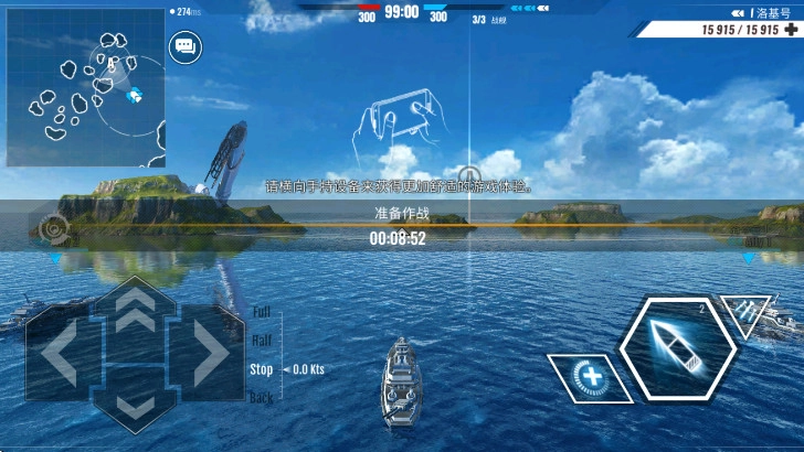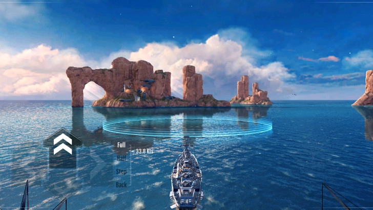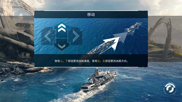 1、进入游戏后,可通过上、下按钮调整战舰的速度,借助左、右按钮改变战舰的航行方向;