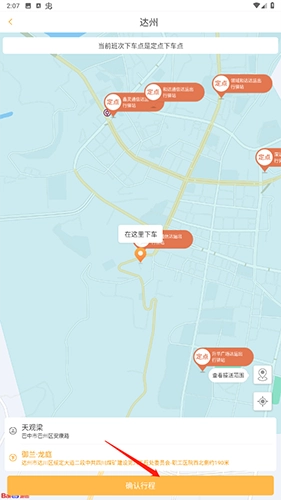 2、选择班次——选择上车点与下车点,然后点击“确认行程”。