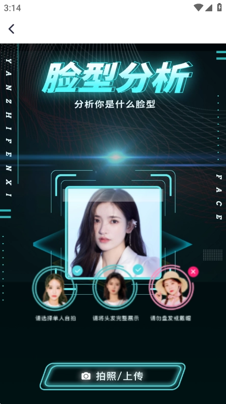 3、界面简洁易操作,只需上传照片就能得到专属的发型建议。