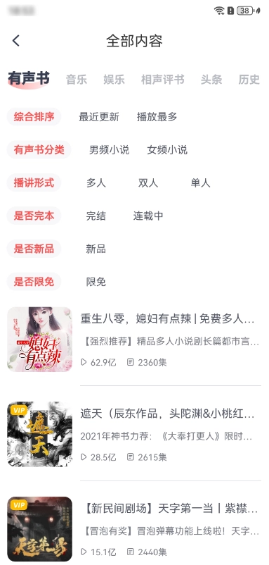 应用内包含了丰富的音频内容,涵盖了新闻、段子、养生、音乐等多个类别,用户可以根据自己的喜好选择收听。