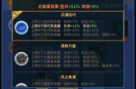 4、玩家通过上阵阵营英雄还能获得额外属性加成,增加大量战力。