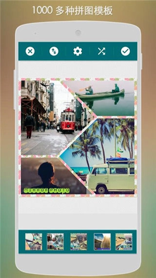 4、一键随机套用滤镜、相框与拼图样式,轻松快速打造出别具一格的照片;