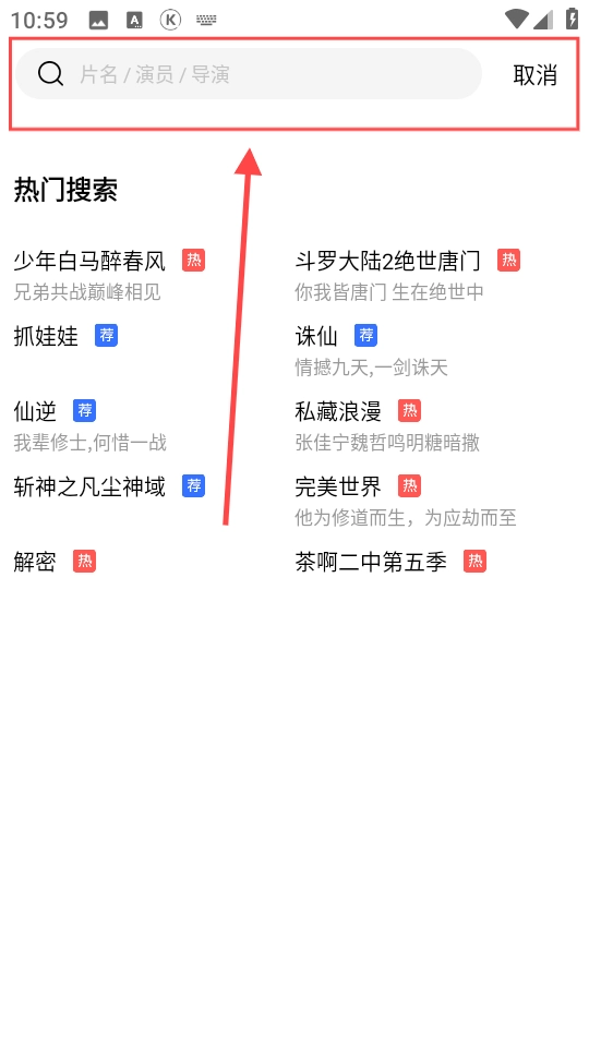6、借助搜索框,能够依据影片名称、主演或者导演来查找你感兴趣的内容。