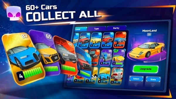 赢取奖励,在对战中收集硬币并解锁新车。制定策略,挑选适配竞技场与游戏模式的最佳座驾。你的对战技巧会成为最可靠的助力。