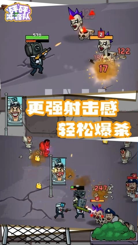 砰砰冲锋队是一款趣味十足的休闲益智游戏,游戏采用高清画面风格,玩家能解锁有趣的消除玩法,还有多种战斗方式可供体验。通过提升实力,玩家可以快速击败敌人,完成更多挑战并赢得胜利。目前,摄像人与马桶人两大阵营因不明原因陷入激烈争斗,作为正义代表的摄像人需要在邪恶马桶人的围攻下生存。游戏拥有爽快的对战内容,还有丰富的武器装备可收集,玩家需注意提升自身实力,开启刺激战斗——消灭的敌人越多,获得的奖励就越多样。自由升级、不断冒险,感兴趣的玩家千万别错过,随时都能尽情畅玩。