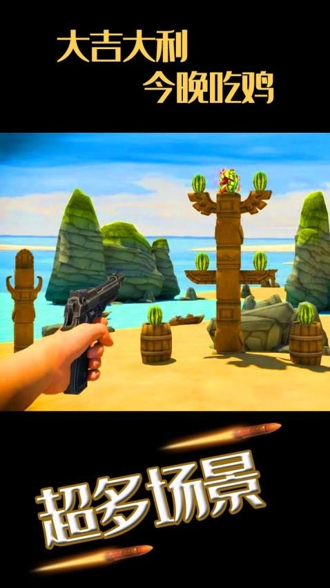 在限定时间里尽可能多打些西瓜,这里有各种射击难度的挑战关卡;采用精致的绘画风格,带来灵活顺畅的射击体验,快拿起手枪,瞄准西瓜射击吧!不过要小心,碰到炸弹游戏就会结束哦。