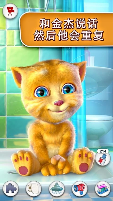 1、与金杰对话:对他说话,他会用他那可爱的声音重复你说过的话。