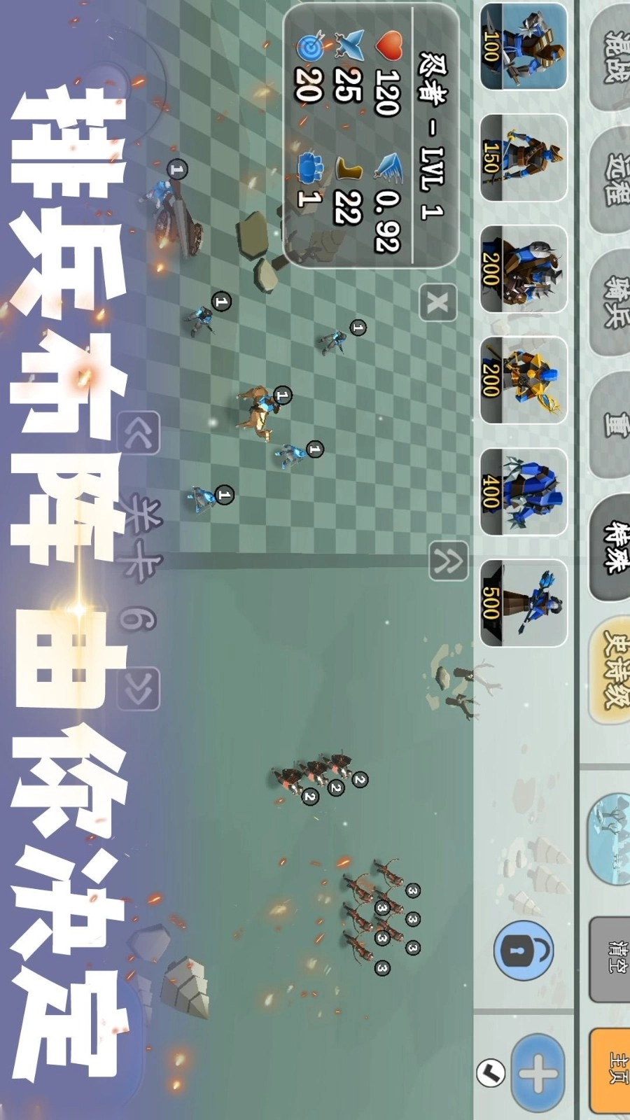 在游戏里,玩家能够化身指挥官,打理专属军队,规划作战策略并与敌人展开生死较量。玩家得合理安排兵力部署,利用有限的金币资源,力求击败对手。