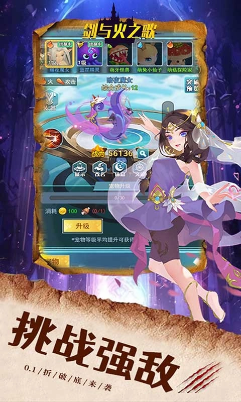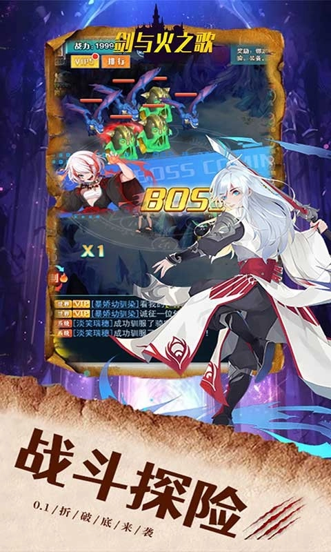 《剑与火之歌》是一款二次元风格的回合制策略游戏,同时推出了0.1折福利版本。玩家上线就能免费领取钻石、VIP7特权、300万金币和绑定钻石,无需完成任何任务。