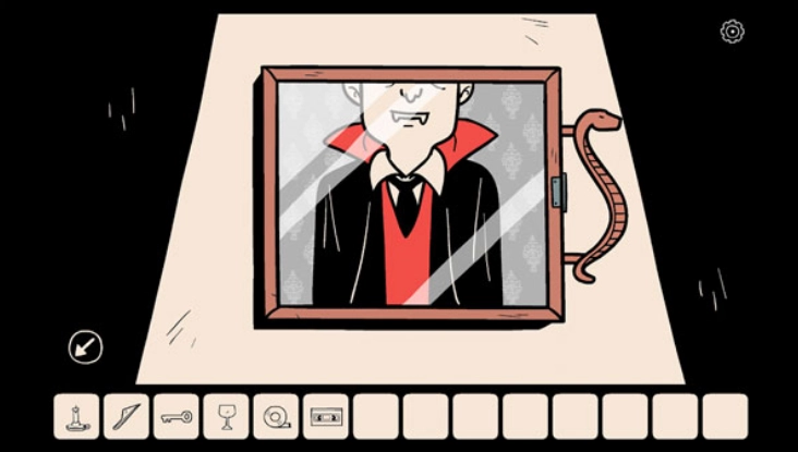 墙上的告示板贴满剪报,其中一张印着女孩的照片,你定睛看去,她的面容仿佛在微妙地扭曲变化。你一张张掀开剪报,后面画着几样奇怪的物品:大蒜、酒杯、十字架和镜子,瞬间让你想起之前看到的吸血鬼画像。