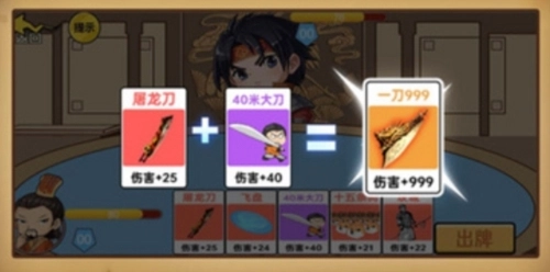 ①攻击+许褚=羞羞的铁拳。(将攻击卡拖动到许褚的头像上即可获得)