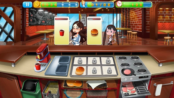 接下来进入游戏画面,在下方的图示里,你能清楚看到每位前来消费的顾客各自的需求。面对不同的顾客,你需要制作对应的美食来满足他们的需求,通过这个过程获得的金币,后续可以用来升级厨房,提高厨房厨具的工作效率,从而缩短顾客的等待时间。