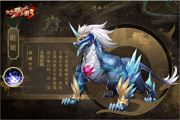 3、技能简评:睚眦是钟山神的上位,全体伤害还有几率触发麻痹效果,兼具输出与控制。