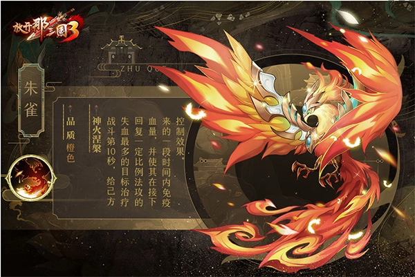 3、技能简评:作为辅助定位的神兽,朱雀的免控增益机制是其核心优势点。当队伍整体治疗量不足,或是在战斗开局就遭遇敌方强力控制技能压制的场景中,它能够有效提升我方低生命值武将的存活几率。需要注意的是,该技能的释放时间固定在开场后的第10秒,若想让技能效果达到预期,就必须精准把控敌我双方各类技能的释放节奏与时机。