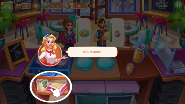 1.进入之后按照教程进行,点击食材的原材料开始制作。