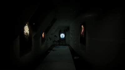 6、你也可以出房门看看,画面场景有点诡异,被封住的电梯,还有黑漆漆的楼道都可以为玩家带来沉浸式的游戏体验感;