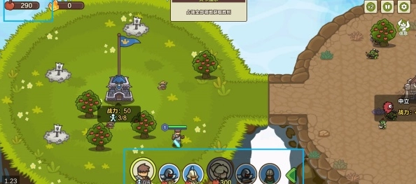 2、进入关卡后,双击城堡招募农民,优先安排他们采摘果树,以此为后续发展储备资源。