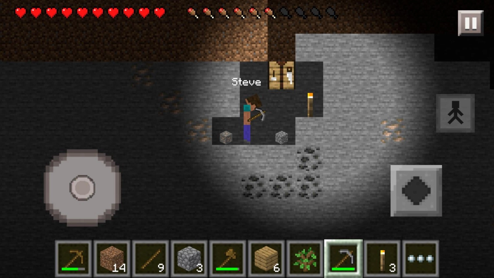3、长按泥土,慢慢就会出现裂纹,裂纹布满方块时方块就会掉落