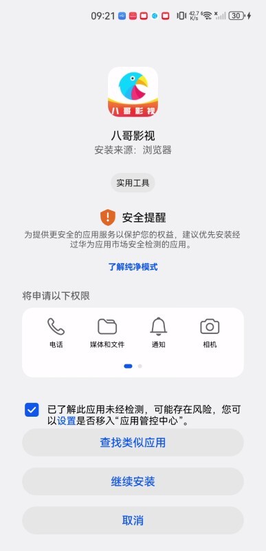 3、点击勾选“已了解此应用未经检测……”,再点击“继续安装”按钮。