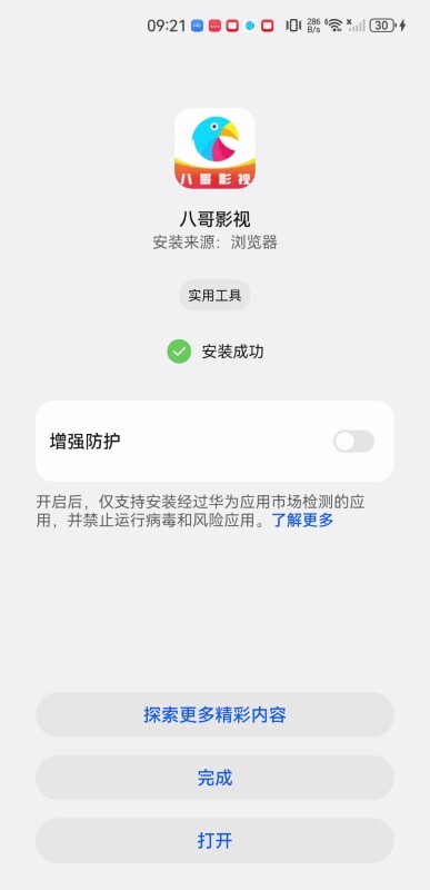 5、显示绿色对号“说明已经安装成功”,点击打开,即可体验。