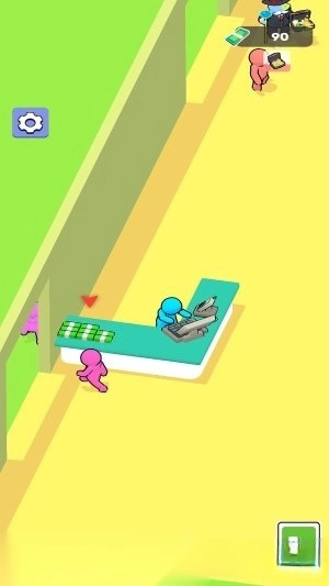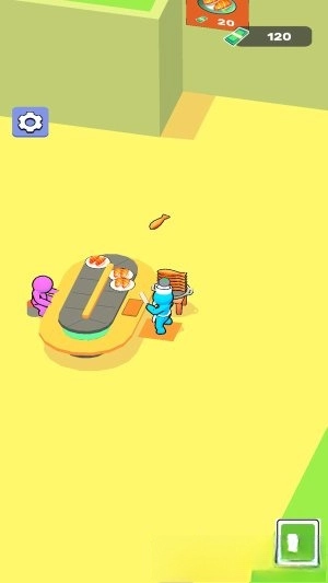 1.进入游戏后,你需要操控蓝色小人开启餐厅的日常运营。从切割食材、制作寿司到煎烤美味,一步步完成食材的加工环节并将菜品端上餐桌。