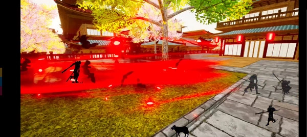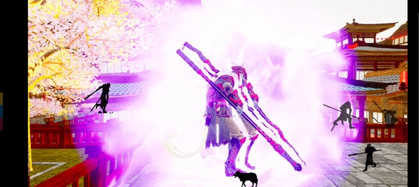 2、设有四个按钮,分别对应普攻、甩棍、跳跃,以及特效拉满的瞬移——启动瞬移时会化作一阵血色旋风;