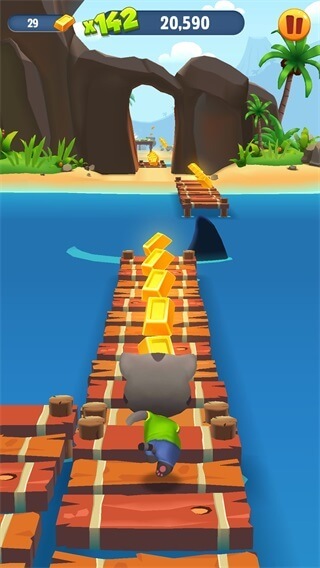 汤姆猫跑酷是一款Q萌的竞速类游戏。玩家可以操控会说话的汤姆猫和安吉拉追逐强盗,夺回属于自己的金子!在跑酷过程中,你将不断探索新场景,感受多样的跑酷风格,还能拾取加速器提升速度。解锁的新场景各有特色跑酷机制,带来丰富体验。此外,会说话的金杰猫、憨憨狗和狗狗本也会加入,陪伴你一起冒险。打开金柜可获得神秘战利品与奖励,让玩法更具新意和乐趣!游戏中还有头盔、磁铁、飞机、双倍金条等道具可供使用,助力你获取更高分数和更多金条。感兴趣的朋友不妨来尝试一下!