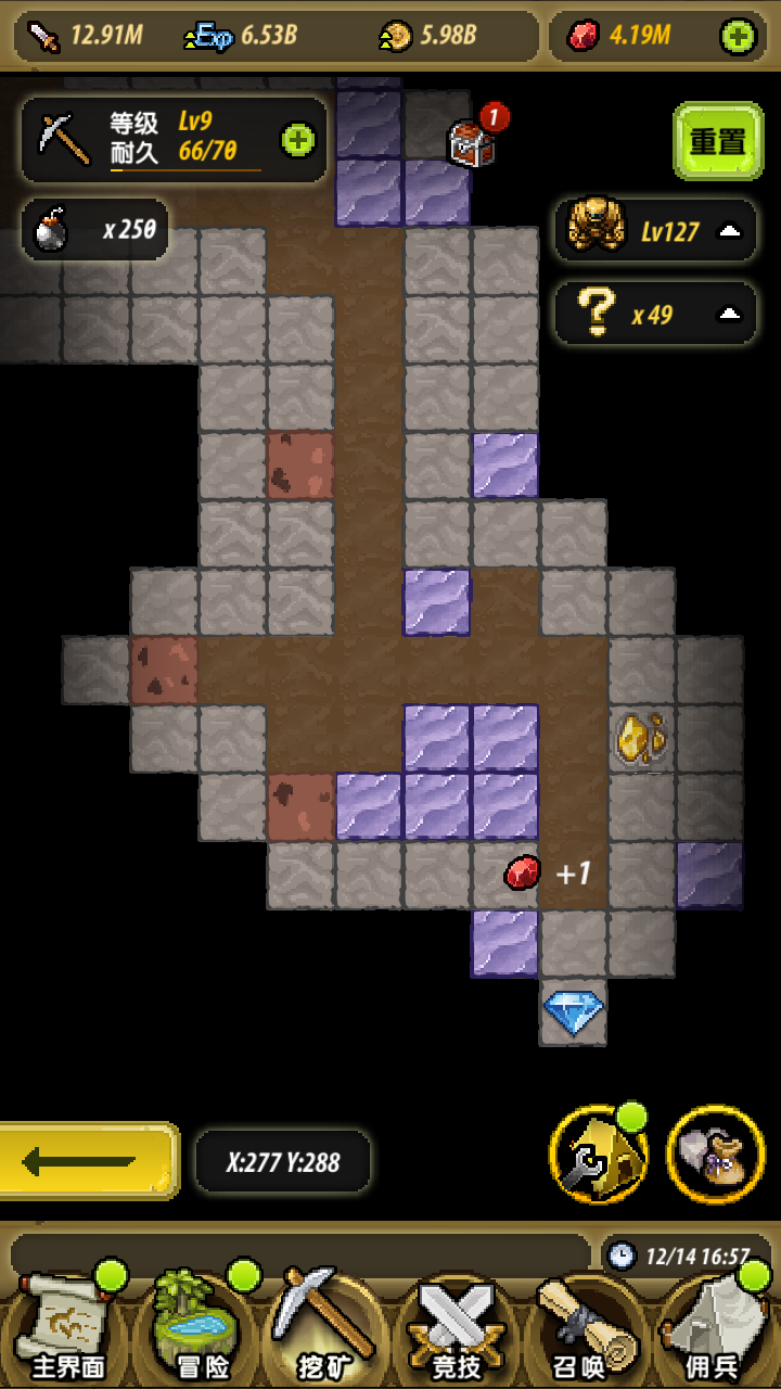 游戏可以不断冒险招募佣兵来提高自己的实力,也可以挖矿杀怪来获得各类资源。