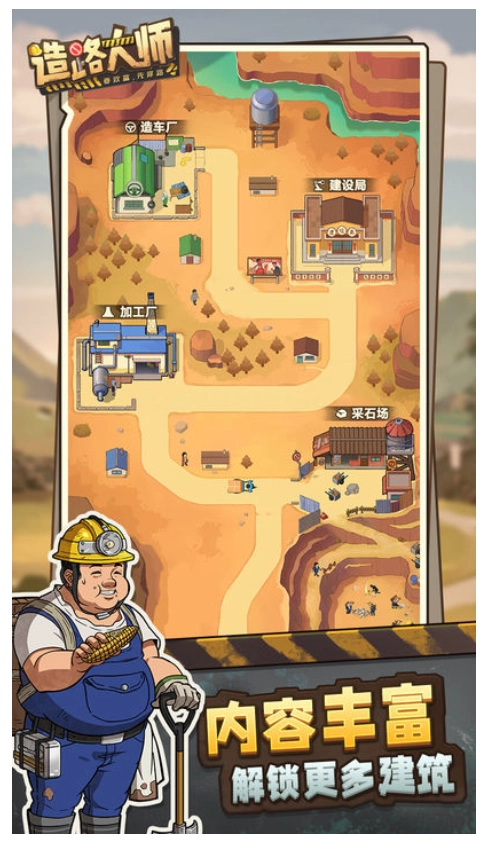 2、在游戏里,你将化身建筑工人投身公路建造,核心任务是修建道路与修饰地图,助力大家更好地致富;同时还有不少新奇的闯关玩法,既能增添游戏乐趣,又能推动任务完成。