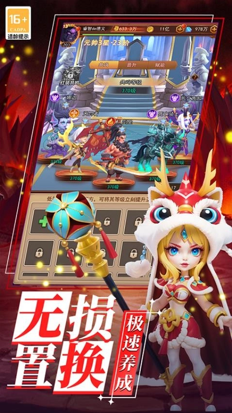 无损置换,极速养成,千变万化的阵容搭配,轻松逆袭,游戏相当精彩。